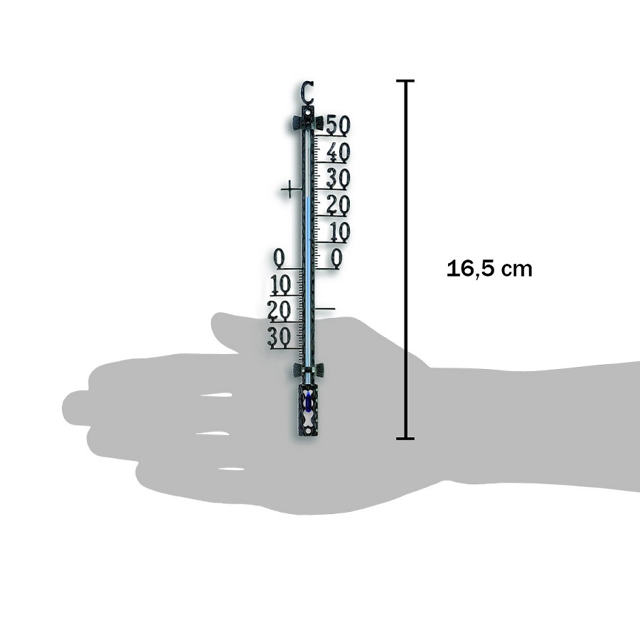 Цей вуличний настінний термометр для будинку з окремими градусами є класичним. Його непідвласний часу дизайн, оригінальний TFA, ідеально підходить для швидкого і зручного зчитування температури зовнішнього повітря в зоні входу в будівлю, на балконі або на терасі. Термометр повністю виготовлений у Німеччині. Калібрування капіляра термометра за 2 позначками забезпечує високу точність вимірювання. Капіляр заповнений безпечною спеціально забарвленою рідиною (не містить ртуті). Використання ртуті у термометрах заборонено вже кілька років.