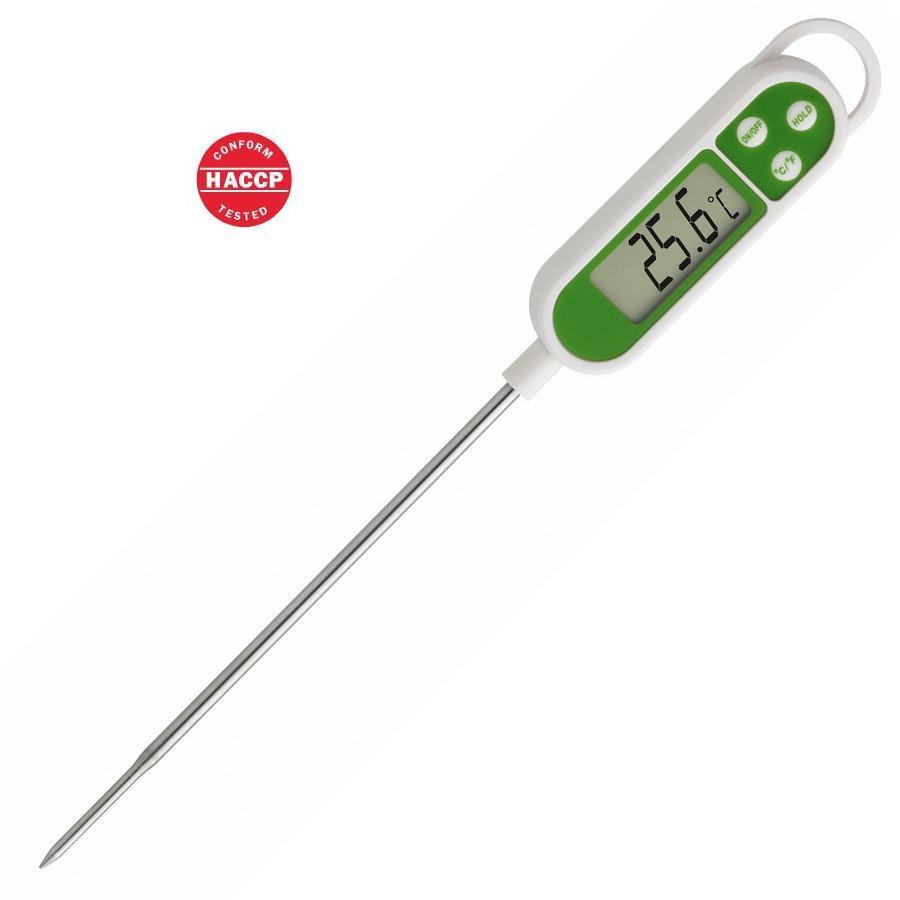 Мониторинг температуры внутри мяса во время барбекю или жарки, проверка безопасной температуры детского питания, приготовление пищи в пекарне, кондитерских изделиях или в сфере общественного питания, управление прилавком - холодильником в мясной лавке или в супермаркете, проверка склада или входящий товарный осмотр в столовой, на кухне или в пищевой промышленности - все это возможные варианты использования термометра со щупом. Температуру любой пищи можно измерить быстро, точно