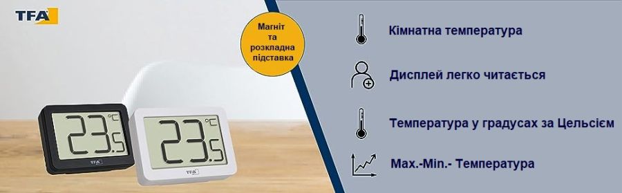 Практичний та невеликий термометр ідеально підходить для контролю температури у приміщенні: у вітальні, спальні, підвалі, майстерні, гаражі та навіть в автомобілі. Два невеликі магніти з тильного боку корпусу прилипають до металевих поверхонь. Альтернативно, ви можете використати складну підставку. Контроль температури в приміщенні є важливим фактором для комфортного та здорового довкілля та допомагає економити енергію. Навіть зниження температури на 1 градус може призвести до зниження витрат на опалення до 6%.