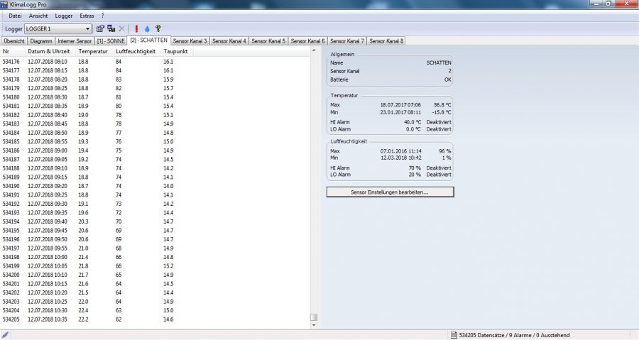 предлагается обширная документация данных. С помощью программного обеспечения «KlimaLogg Pro» данные могут передаваться на ПК