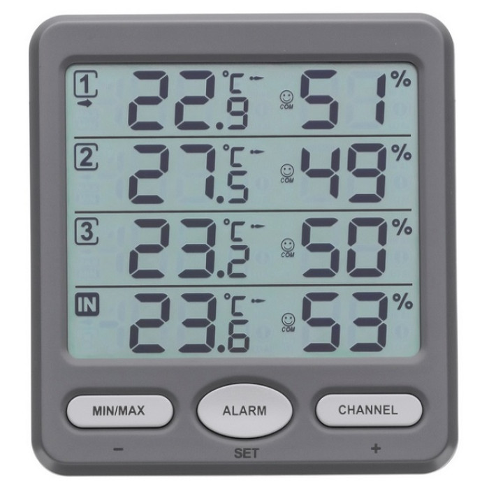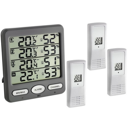 комплекте 3 внешних беспроводных датчика температуры и влажности