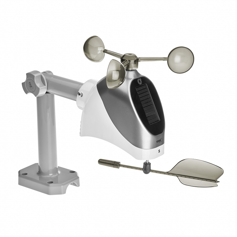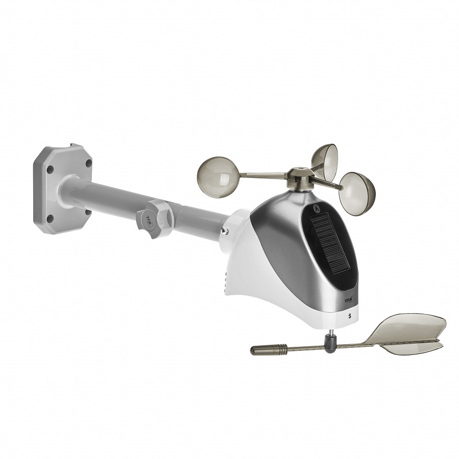 Безпровідний комбінований датчик для використання з метеостанціями TFA VIEW WIFI і додатком VIEW: 35.8000.01 | 35.8001.01 | 35.8002.01 | 35.8003.01. Зовнішній датчик призначений для визначення напрямку і швидкості вітру, а також температури та вологості. Значення передаються безпровідним способом на базову станцію. Датчик має розміщуватись високо над землею вертикально і не мати перешкод, таких як будівлі або дерева.