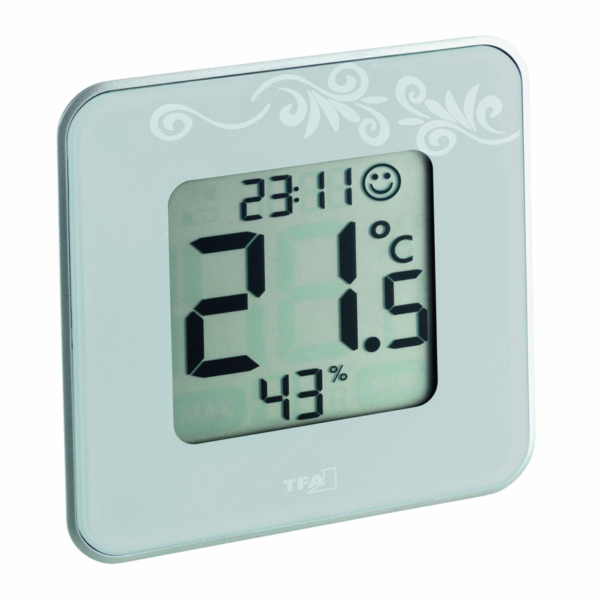 Этот декоративный термогигрометр является идеальным измерительным прибором для мониторинга климата в помещении. Вы можете легко следить за температурой и влажностью и регулировать их с помощью целевого отопления и вентиляции, когда значения находятся за пределами зоны комфортного уровня. Это создает приятную и здоровую среду обитания и даже экономит расходы на отопление. Если появляется значок смайлика, значения являются идеальными. Вы можете просмотреть температуру или влажность в большом формате и получить сохраненные максимальные и минимальные значения одним нажатием кнопки.
