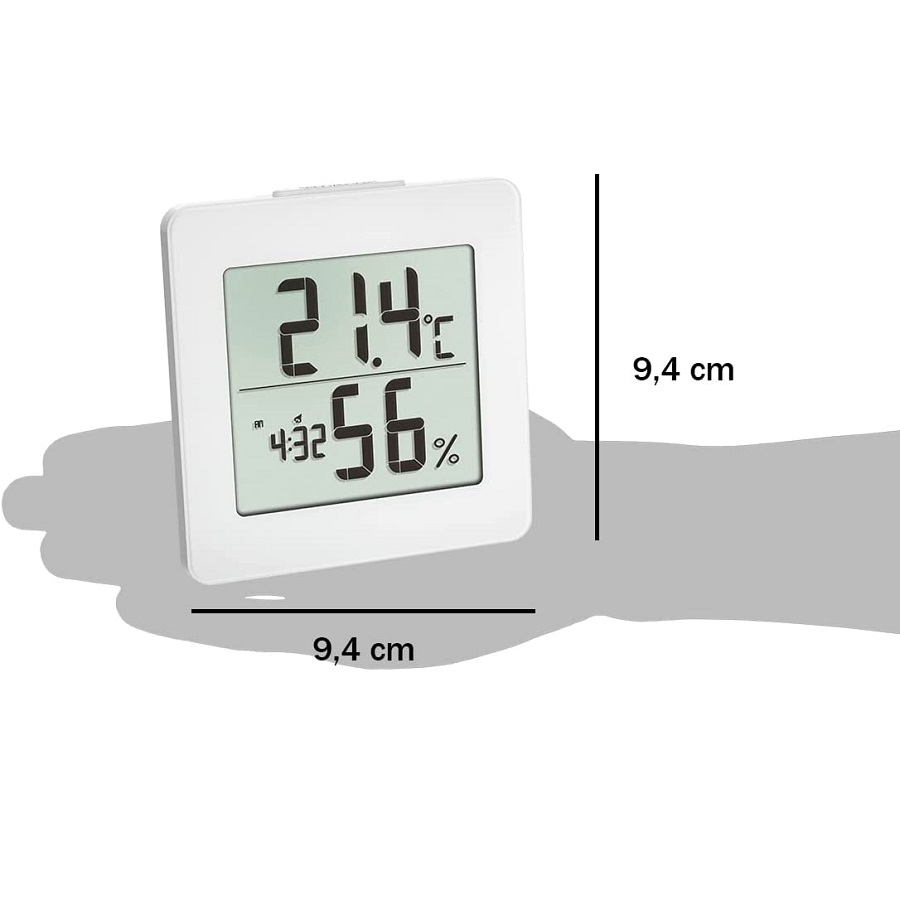 нажатии на кнопку. У термогигрометра также есть часы с датой на дисплее.
