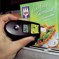 С помощью инфракрасного термометра можно измерить температуру поверхностей быстро и легко, не касаясь их. Просто направьте точку лазерного указателя термометра на объект измерения, нажмите на кнопку и через секунду на дисплее термометра отобразится значение температуры. Встроенный лазерный указатель поможет вам точно навести термометр на место измерения. Применение инфракрасных термометров разнообразно. Вы можете использовать их для контроля систем кондиционирования воздуха и отопления, обнаружить места сквозняков в окнах или проверить тормозную систему в автомобиле. Также можно проверить температуру детского питания, напитков, воды для купания, масла для приготовления пищи, джема или горячего шоколада. Идеально подходит для продуктов питания, в соответствии с HACCP.