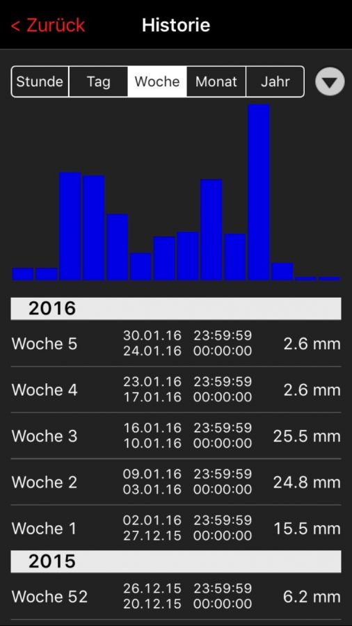 Кроме того, дождемер имеет также полезные функции PRO, такие как графический обзор данных, функция