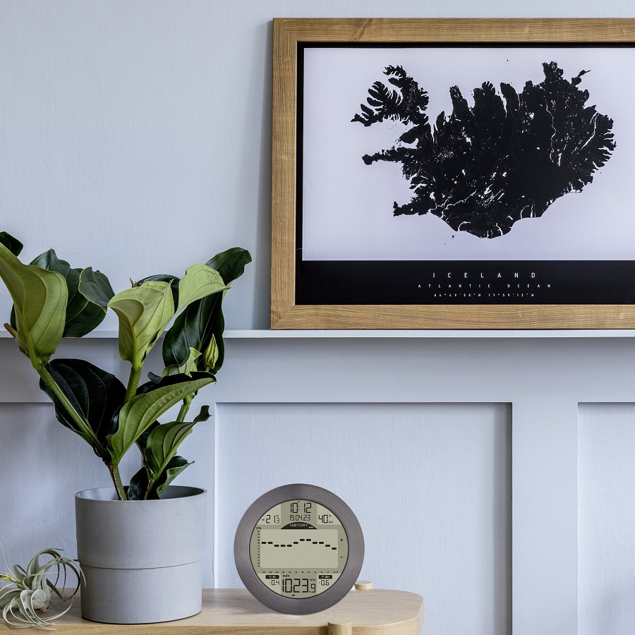 ОПИС Ви можете почути море і відчути вітерець на своїй шкірі. Якщо ви збираєтеся знову відправитися у плавання, безпровідна метеостанція METEOMAR стане правильним джерелом інформації для вас. Що відрізняє його від інших, так це точні вимірювання, морський зовнішній вигляд і зареєстрований дизайн TFA, а також чіткий дисплей. Але навіть якщо вас більше тягне до гір або бездоріжжя, METEOMAR надасть вам всю важливу інформацію про погоду. З похибкою ±1 гПа (крок вимірювання 0.1) ця метеостанція надає точну інформацію про атмосферний тиск і відображає її на дуже детальному графіку за 1, 3 або 24 години. Завдяки двом функціям сигналізації ви можете стежити за зміною атмосферного тиску за останні 3 години і за останню годину. Максимальні та мінімальні значення температури, вологості та тиску повітря можуть скидатися автоматично щодня або бути в полі зору протягом будь-якого періоду часу за допомогою ручного скидання. Метеостанція розміщена в благородному металевому каркасі з шліфованого алюмінію. На задній панелі є підставка та дуже міцний кронштейн для настінного кріплення - незалежно від того, наскільки сильним буде вітер, METEOMAR залишається на місці. За бажанням цю морську метеостанцію можна перетворити на безпровідну метеостанцію, додавши до неї термо-гігродатчики. Передбачені усі умови для використання станції з 3 датчиками (арт. 30.3249.02), які продаються окремо.