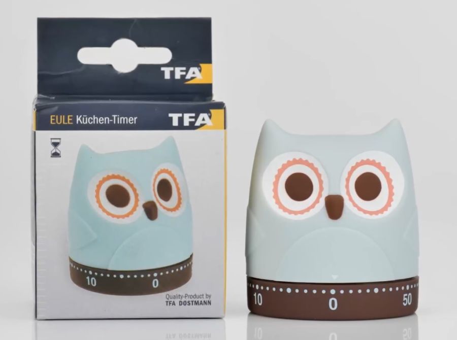 Коли справа доходить до приготування їжі, цей практичний таймер робить хорошу роботу. Цей практичний кухонний помічник з пластмаси з гумовим покриттям зручно лежить в руці. Він не тільки забезпечує ідеально приготовлене яйце на сніданок, але також нагадує про пиріг в духовці або пасту в каструлі. Ви можете встановити інтервал часу до 60 хвилин безперервно з механічним механізмом намотування металу. Ви можете розраховувати на нагадування в потрібний час звуковим сигналом.