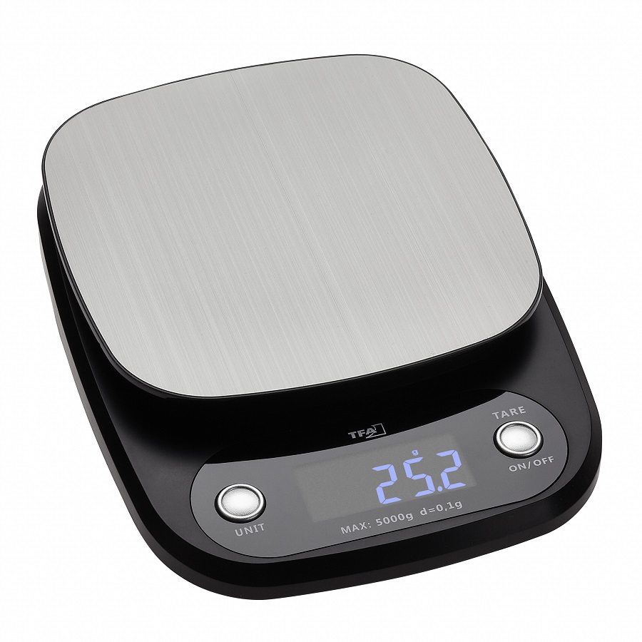 Цифри після коми теж мають для вас значення? Цифрові кухонні ваги Apple Pie пропонують правильну підтримку, тому що ви можете використовувати їх для зважування з точністю до 0.1 г. Отже, ви нарешті можете точно зважувати трави та спеції. Ви можете легко прочитати точну вагу на РК-дисплеї з підсвічуванням. Завдяки функції зважування тари на цих кухонних вагах враховується лише вміст. Щоб використати цю функцію, помістіть порожній контейнер на платформу для зважування. Тільки після цього увімкніть пристрій. Таким чином, цифрові кухонні ваги Apple Pie зважують лише інгредієнти. Кнопка UNIT забезпечує гнучкість вибору одиниць вимірювання. Просто натисніть на потрібну одиницю за необхідності. Будь то г, мл, фунт:унція або унція (рідина), Apple Pie справляється з німецькими та американськими вагами. Ваги зважують рідини так само надійно, як і тверді інгредієнти. Вам не потрібно думати про те, щоб вимкнути їх, тому що ваги вимикаються автоматично. І роблять вони це вже за дві хвилини. Так що батарейок точно вистачить надовго. Отже, що робить цифрові кухонні ваги Apple Pie такими особливими? Вони є перфекціоністом, коли справа доходить до точності. Вони прості в управлінні та мають гарний чарівний дизайн. Чорний пластик і поверхня для зважування з нержавіючої сталі, що легко очищається, у поєднанні з образом позачасової елегантності. Звичайно, стільки функціональної краси потребує надійної підставки. Ось чому гумові накладки запобігають ковзанню. Не дивно, що вам хочеться з'їсти яблучний пиріг.
