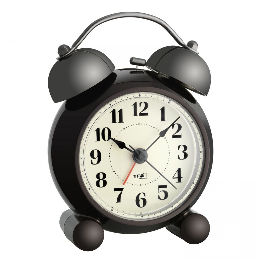 Это классический будильник с двумя колоколами - заново изобретенный. Под ностальгической оболочкой скрываются современные технологии. Пока вы спите, встроенный часовой механизм "Sweep" работает плавно и очень тихо и не мешает во время сна. Благодаря сигналу двойного звонка, он наверняка вытащит вас из постели. Просто нажмите на переднюю крышку, если вы не хотите вставать сразу, и функция повтора разбудит вас через несколько минут. Таким же образом можно активировать подсветку ночью. На своих милых круглых ножках он всегда стоит рядом с кроватью.