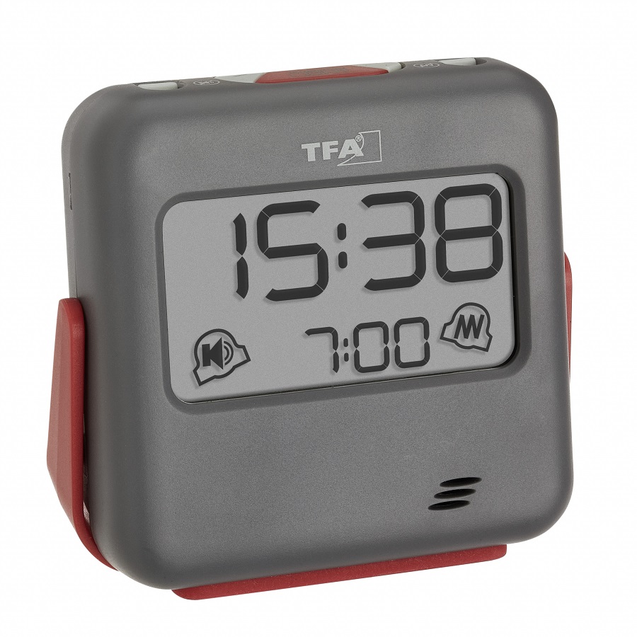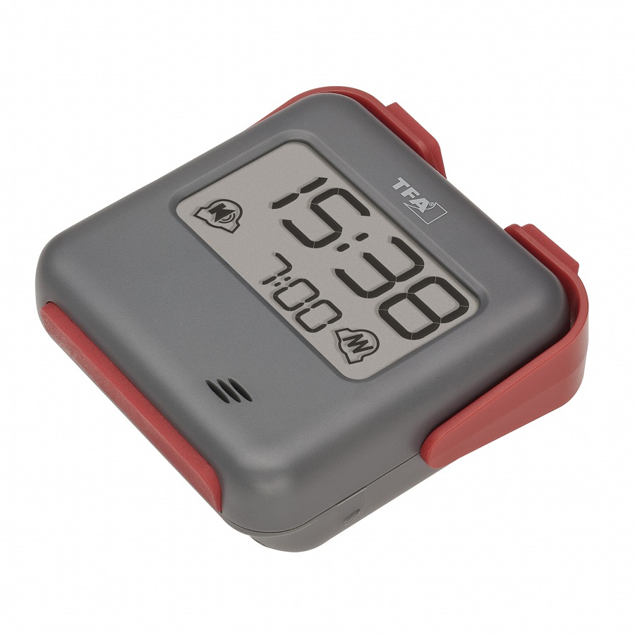 Компактний, стійкий та ідеальний для подорожей – цифровий будильник BUZZ стане ідеальним компаньйоном для вашої ділової поїздки чи відпустки. Якщо ви хочете бути першим біля басейну вранці або маєте бути в аеропорту вчасно, ви нічого не пропустите з цим дорожнім будильником. Навіть якщо ви страждаєте на порушення слуху або просто дуже міцно спите, цифровий будильник BUZZ гарантовано вас розбудить. Ви можете вибрати, чи ви хочете, щоб вас розбудив вібраційний сигнал та/або сигнал будильника. Якщо ви не хочете відразу вставати, можна перервати будильник на 5 хвилин за допомогою функції повтору. Завдяки фоновому підсвічуванню одним натисканням кнопки можна легко дізнатися поточний час навіть уночі. Ще однією практичною особливістю є його підставка, яка складається: вона не тільки дає будильнику надійну опору на тумбочках біля ліжка цього світу, але і одночасно служить замком з ключем. Це означає, що вибрані налаштування не загубляться в ручній поклажі або валізі, коли ви в дорозі.