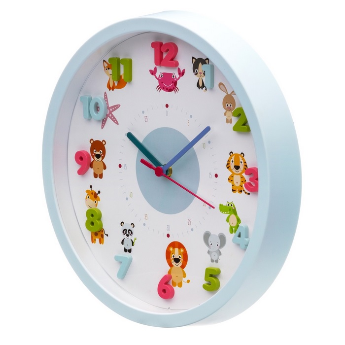 Детские настенные часы LITTLE ANIMALS с любовью и продуманностью разработаны с множеством мелких деталей. Для каждого часа есть индивидуальный мотив животного. Это помогает маленьким детям научиться управлять временем, например, «Вы можете играть сейчас, пока маленькая стрелка часов не окажется на крокодиле». А узнать время еще проще. Большие пластиковые 3D-цифры ярких цветов и дополнительная минутная маркировка делают часы особенно удобными для чтения. Часы имеют высококачественную стеклянную крышку. Веселые цвета хорошо сочетаются с детской комнатой или детской. Благодаря механизму с тихим механизмом «Sweep» стрелки скользят по циферблату практически без шума и не мешают, когда ваш ребенок спит или выполняет домашнюю работу.