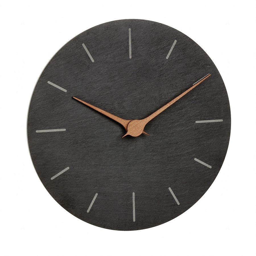 Цей настінний годинник з циферблатом із справжнього сланцю привнесе у ваш будинок природність та елегантність. Унікальна текстура каменю робить кожен годинник унікальним. Щоб зберегти природну красу цього настінного годинника, на циферблаті вигравіровані позначки годин. Доповнюють це оригінальні стрілки з деревини горіха. Ключовий компонент годинника також вражає своєю якістю та надійністю. Завдяки відхиленню менше 0.5 секунди на день енергозберігаючий якісний механізм набагато точніший за інші наявні у продажу кварцові механізми. Завдяки тривалому терміну служби батареї необхідно міняти приблизно раз на три роки. Стрілки майже безшумно ковзають циферблатом і не турбують настирливим цоканням, поки ви спите, вчитеся або читаєте.
