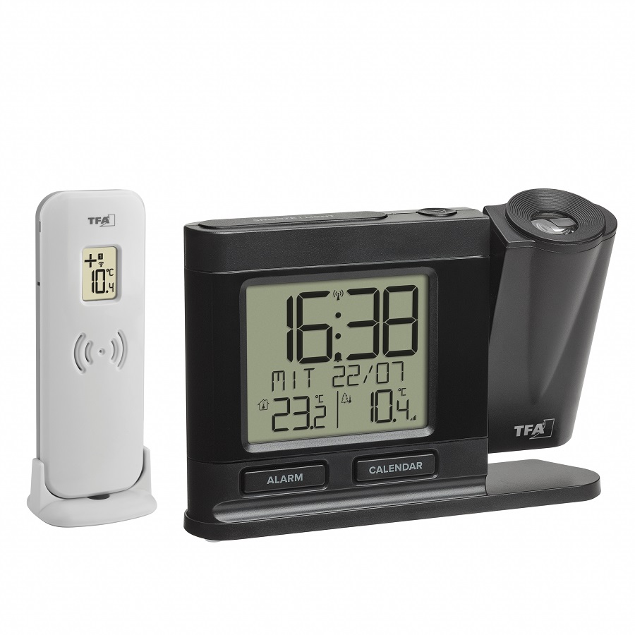 Просто переверніться ще раз… Ранок був би таким розслабленим, якби вам було легше вставати з ліжка. Ми не можемо вам цього обіцяти, але намагатимемося полегшити вам завдання за допомогою цього проекційного будильника. Принаймні, ви можете зручно читати час зі стіни або стелі вашої кімнати, лежачи, і бачити, коли справді час вставати. Незалежно від того, чи краще вам сьогодні одягнути теплі шкарпетки або шорти, цей радіокерований будильник також надасть вам цю інформацію завдяки невеликому бездротовому датчику, розташованому на відкритому повітрі. За бажанням він по черзі проектує температуру в приміщенні та на вулиці, а також час на стіну чи стелю. Дисплей можна повертати на 270 ° і встановлювати два різні рівні яскравості. Ви також можете самостійно визначити інтенсивність підсвічування дисплея. Чотири рівні яскравості та регульована функція затемнення роблять це можливим. Чи хочете ви, щоб вас розбудили через секунду або віддаєте перевагу кнопці повтору: завдяки радіоприйманню радіокерований будильник не має собі рівних з точки зору пунктуальності і будить вас у потрібний час. Крім часу, дата і день тижня також відображаються в різних форматах, що обираються.