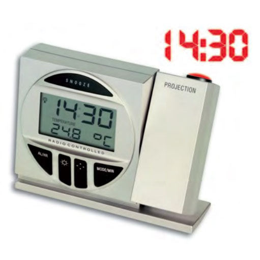 Радиоуправляемый будильник TFA отображает текущее время на стене или потолке