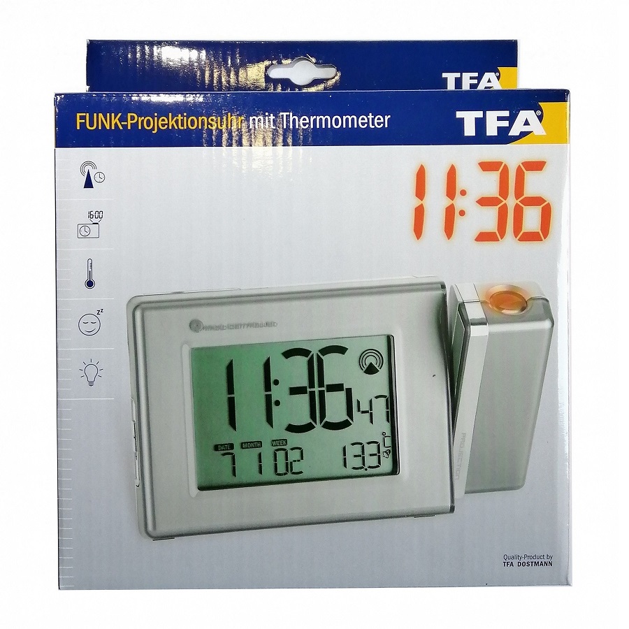 Радиоуправляемые часы TFA отображают текущее время на стене или потолке вашей